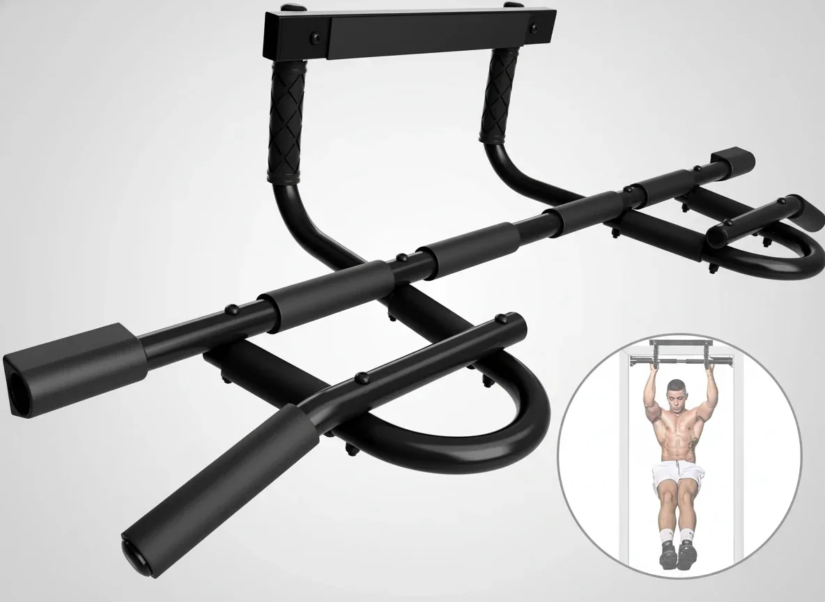 Transform your home into a personal fitness sanctuary with our premium wall mounted pull up bar! This versatile strength training equipment is engineered to deliver professional-grade workouts in the comfort of your own space. **UNBREAKABLE STRENGTH & DURABILITY** Experience unparalleled stability with our heavy-duty construction that supports up to 300lbs (136kg) without bending or deformation. The advanced lock nut system with punched-hole design ensures your safety during intense workouts, providing peace of mind with every repetition. **ERGONOMIC MULTI-GRIP DESIGN** Target every major muscle group with precision! Our scientifically designed multiple grip positions allow you to perform wide grip pull-ups, close grip chin-ups, and neutral grip exercises. Each handle is wrapped in high-density NBR foam that absorbs sweat while protecting your wrists from strain and discomfort. **PERFECT FIT FOR ANY DOORWAY** No more compatibility worries! This smart pull up bar adapts to doorways ranging from 30\" to 38\" (76cm–96cm) wide and accommodates frame thicknesses from 4.74\" to 6.25\" (12cm–16cm). The generous padding and TPR spacers create a protective barrier that keeps your doorframes scratch-free and pristine. **QUICK & EFFORTLESS INSTALLATION** Get ready to workout in minutes, not hours! Our complete installation kit includes everything you need with clear, step-by-step instructions. For most standard door trims above 13/16\", no drilling or screws required – simply position and start training! **SPACE-SAVING HOME GYM SOLUTION** Maximize your living area without sacrificing your fitness goals! This compact design tucks away neatly when not in use, making it ideal for apartments, small homes, or office spaces. The quick-release feature allows you to remove and store the bar in seconds, maintaining your room's aesthetic appeal. **YOUR ULTIMATE FITNESS COMPANION** Imagine waking up to a complete upper body workout station just steps from your bedroom! Build impressive back muscles, sculpt defined arms, and strengthen your core without expensive gym memberships or time-consuming commutes. Whether you're a fitness enthusiast looking to maintain gains or a beginner starting your wellness journey, this pull up bar grows with your fitness level. Perfect for busy professionals, home workout enthusiasts, apartment dwellers, and anyone seeking convenient strength training solutions. Create the home gym of your dreams today and take control of your fitness destiny! Ready to elevate your workout routine? Add this essential fitness tool to your cart now and experience the transformation firsthand!