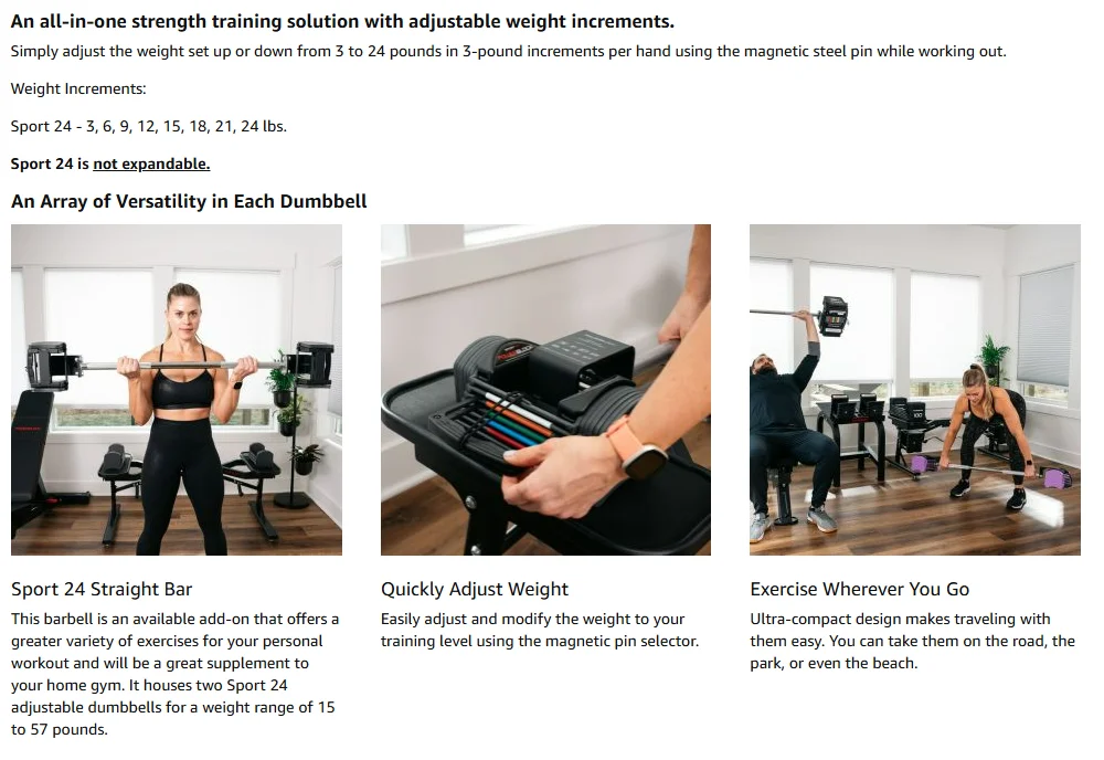 Sport 24 Adjustable Dumbbells, 3-24 Lb. Durable Steel Build, Innovative at Home